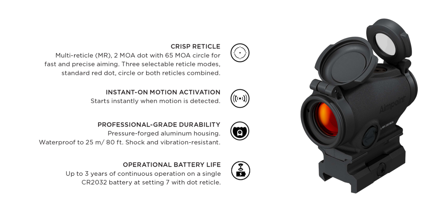 - Instant-on motion activation, the sight starts instantly when motion is detected